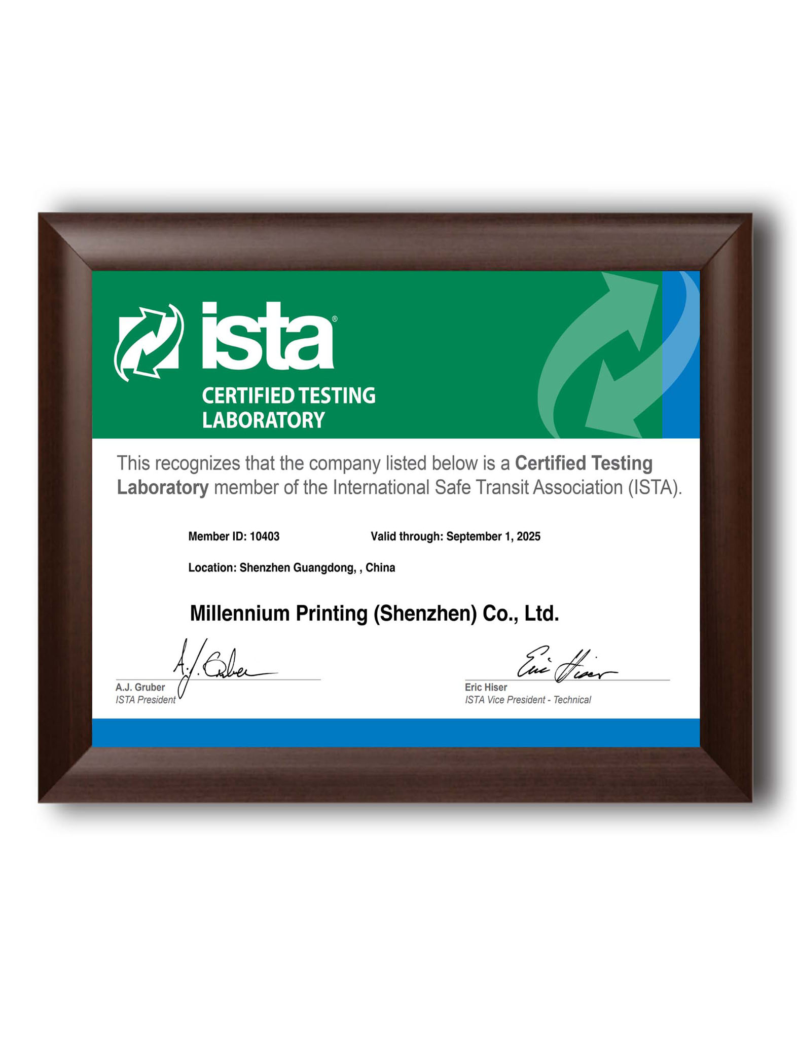 Received ISTA Certified Testing Laboratory